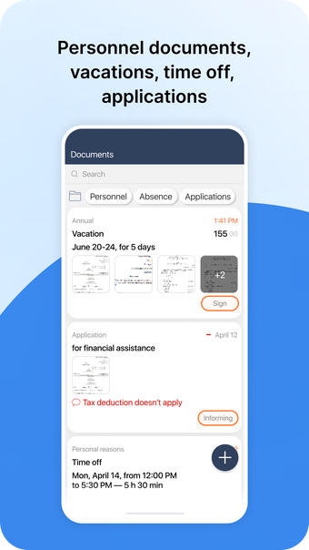 Saby My is een productiviteitsapp voor iPhone die werknemers helpt bij het beheren van hun persoonlijke account. De app biedt essentiële secties zoals personeelsdocumenten, waar gebruikers aanvragen voor vakanties en tijd vrij kunnen aanmaken en ondertekenen. Daarnaast kunnen medewerkers hun loonstrook inzien en hun salaris, betalingen en bonussen controleren.